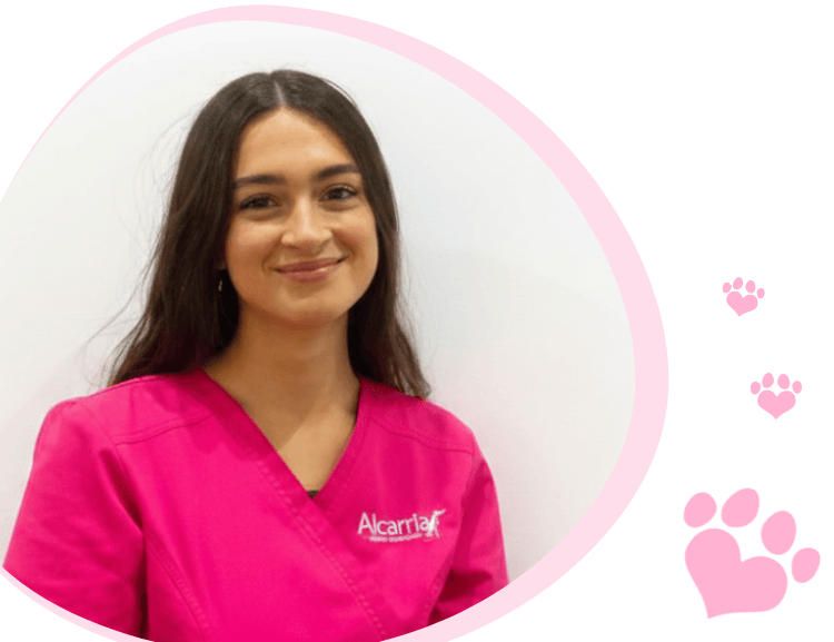 Se encarga de la recepción, atención telefónica, laboratorio y asistencia al veterinario, especialmente en la consulta felina, donde su trato paciente y cuidadoso marca la diferencia. Además, es la encargada de la nutrición animal, asesorando a cada cliente de forma personalizada para mantener la salud y el bienestar de sus peludos compañeros.